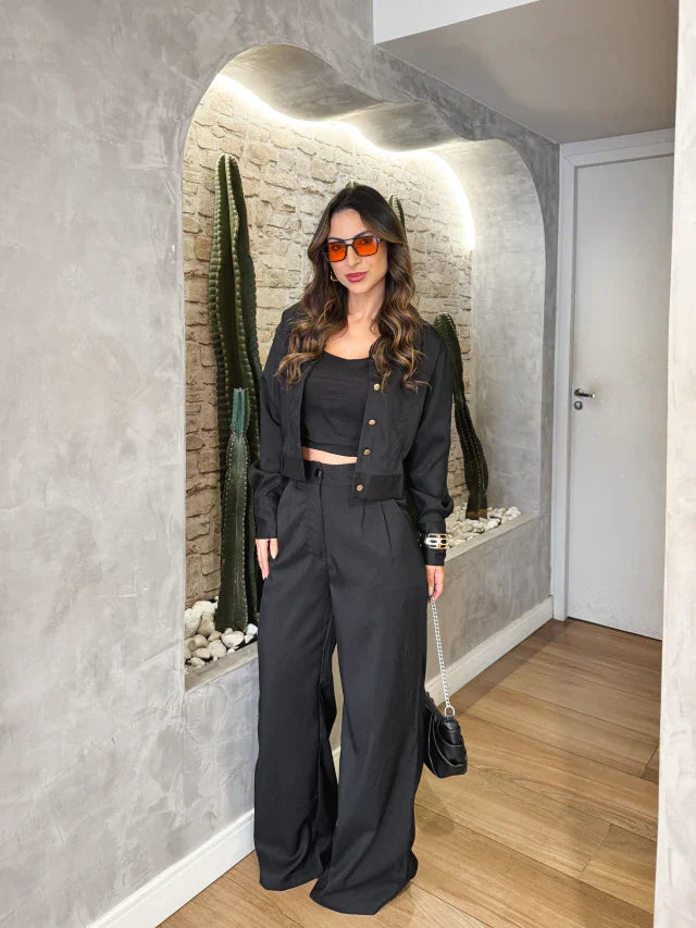 O Conjunto Alfaiataria Três Peças combina elegância, conforto e modernidade em um só look. Pensado para mulheres que amam praticidade sem abrir mão da sofisticação, é perfeito para criar produções cheias de personalidade. ✨